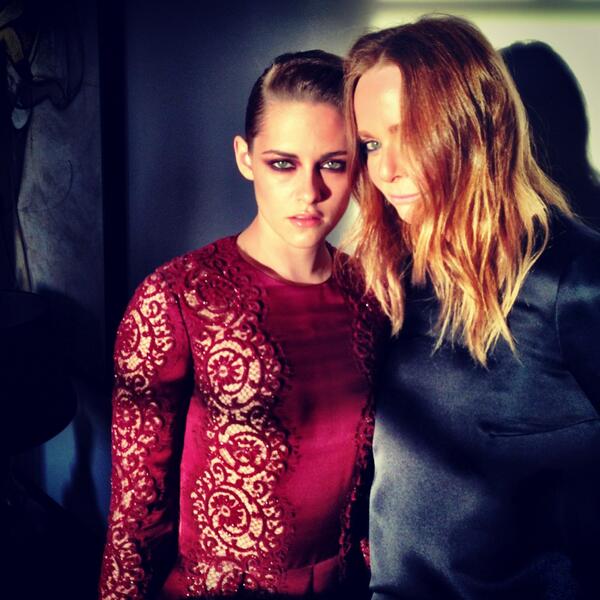 קריסטן לבשה עיצוב של מעצבת האופנה סטלה מקרטני שלא חסכה מאיתנו ודקות לפני האירוע היא צייצה תמונות שלה ביחד עם קריס מתוך הטוויטר שלה :